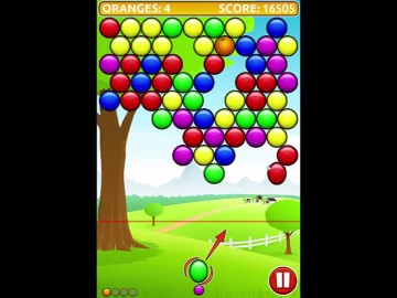 Ammu kuplia ja yhdistä vähintään 3 samanväristä, jotta voit poistaa ne kentältä. Pudota appelsiinit tason suorittamiseksi. Kuinka monta hedelmää voit korjata?