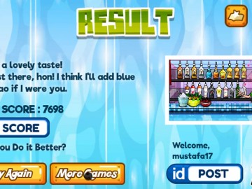 Auta tätä upeaa baarimikkoa sekoittamaan juomansa oikeassa suhteessa. Voit valita hyllystä joukon juomia, kuten vodkaa, viskiä, tequilaa ja paljon muuta.