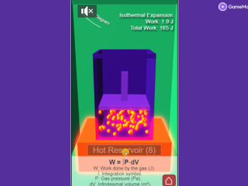 Carnot-pelin kuvaus Carnot-peli on Carnot'n sykliin perustuva interaktiivinen peli, jossa pelaajan on vaihdettava kolmen lämmönlähteen (kuuma, eriste ja kylmä) välillä maksimoidakseen sylinterin männän tekemän työn. Tavoitteena on pitää mäntä ihanteellisessa Carnot'n syklissä ja tehdä siirtymät lämmönlähteiden välillä oikeaan aikaan, jotta sylinteri ei räjähtäisi tai jäätyisi. Mitä lähempänä pelaaja on Carnot'n sykliä, sitä korkeammat pisteet ja edistyminen.